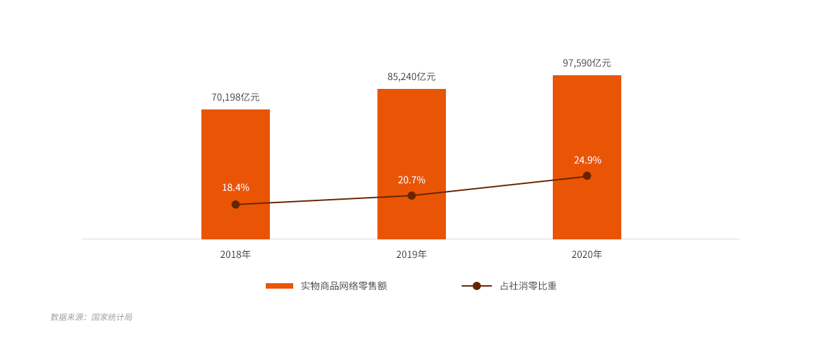 2020年,面对疫情巨大冲击和复杂严峻的国内外环境,我国网络零售市场保持稳健增长,市场规模再创新高。