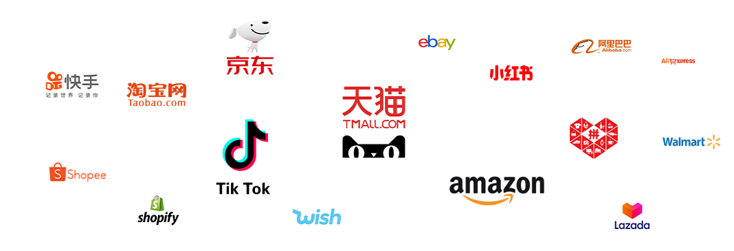 天猫、淘宝、京东、抖音、拼多多、小红书、亚马逊、eBay、速卖通、